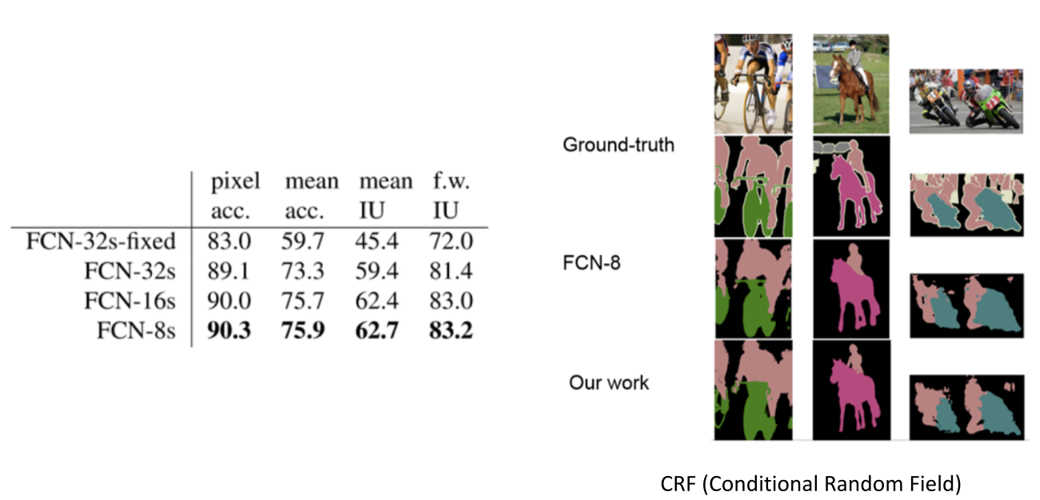 그렇게 하면 result table에서 위와 같이 FCN-8s가 가장 좋은 성능을 보이는 것을 확인할 수 있습니다.
