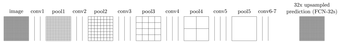 FCN-32s는 pool 5에서 skip connection 없이 해당 feature map에 바로 upsampling을 수행했습니다.