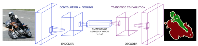 Input: RGB 이미지(h x w x 3)/흑백 이미지(h x w x 1) → Output: 각 픽셀 별 예측된 class를 나타낸 Segmentation map과 같이 Segmentation map을 획득합니다.