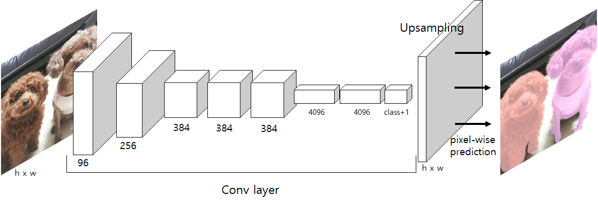 그래서 이를 극복하기 위해 FC layer를 제거하고 1x1 conv layer를 추가하여 네트워크 구조의 처음부터 끝까지 conv layer로 구성된 FCN(Fully Convolutional Network)가 등장했습니다.
